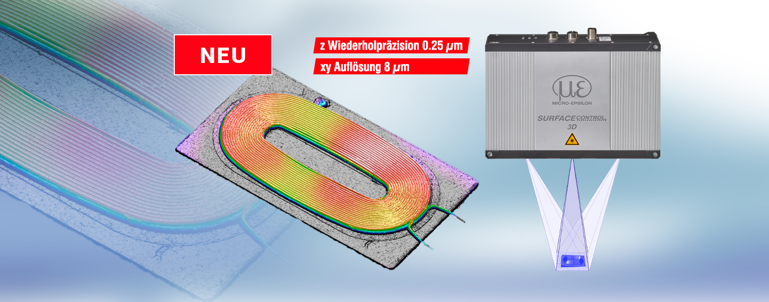 surfaceCONTROL 3D-Sensoren werden zur Geometrievermessung und Inspektion von Oberflächen eingesetzt. Der Sensor nutzt das Prinzip der Streifenlichtprojektion, um diffus reflektierende Oberflächen zu erfassen und eine 3D-Punktewolke zu generieren. Diese Punktewolke wird anschließend ausgewertet, um Geometrien, kleinste Defekte und Unstetigkeiten auf der Oberfläche zu erkennen. Es stehen 3D-Snapshotsensoren mit unterschiedlichen Messflächen und Leistungsdaten zur Verfügung. Damit können kleinste Strukturen auf Bauteilen sowie Formabweichungen auf großflächigen Anbauteilen geprüft werden. Zur Auswertung und Parametrierung stehen leistungsstarke Softwarepakete zur Verfügung.