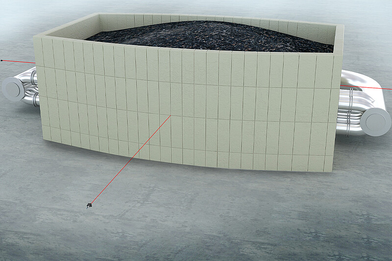 Laser-Distanzsensoren von Micro-Epsilon erfassen kleinste Bewegungen der einzelnen Stahlbetonwände. Vier Sensoren vom Typ optoNCDT ILR3800 messen kontinuierlich, in einem Abstand von 10 bis 15 m, minimale Bewegungen der rauen Betonwände. Das robuste Gehäuse schützt die Sensoren vor Witterungseinflüssen. Über die analoge Schnittstelle (4 … 20 mA) wird der Messwert an eine SPS übermittelt. Somit lassen sich sowohl eine computergesteuerte Prozessüberwachung als auch eine lückenlose Dokumentation der Messwerte realisieren. Bei Überschreitung des Sollwertes wird ein Alarmsignal ausgegeben, die Energiezufuhr zu den Steinen wird in diesem Fall umgehend gestoppt. Fachpersonal untersucht zusätzlich die Betonwände auf mögliche Mängel.