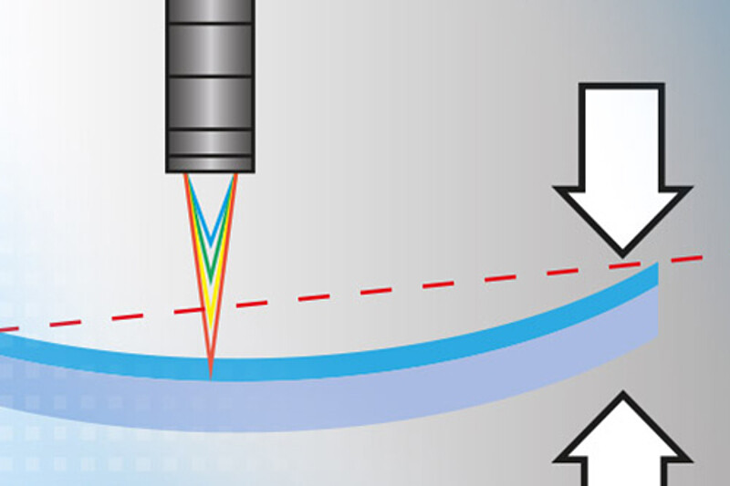Konfokal-chromatische Sensoren scannen die Oberfläche von Wafern und erfassen so die Durchbiegung und Verzug von Wafern. Mit einer hohen Messrate ermöglichen die confocalDT Controller hochdynamische Messungen. Dadurch können die Wafer in kurzen Taktzeiten geprüft werden.