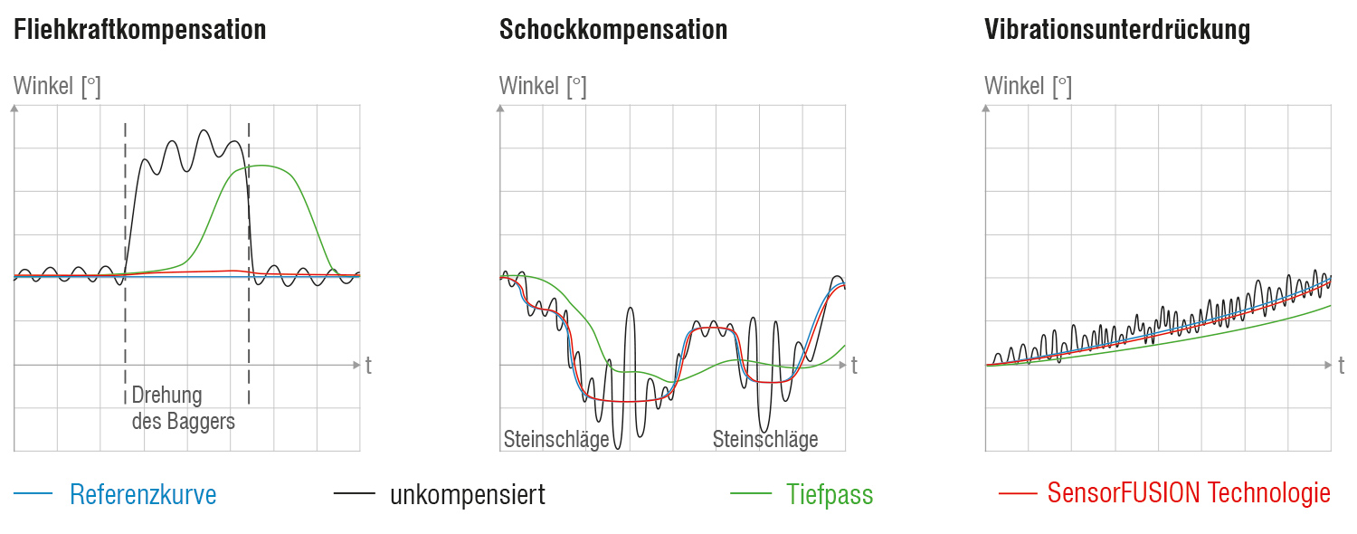 - Störkompensierte Winkelmessung selbst bei plötzlichen Bewegungen, Stößen und Vibration