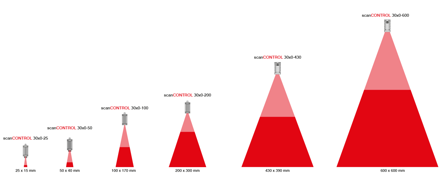 Laser-Scanner der Serie scanCONTROL 30x0 zählen zu den leistungsfähigsten Profilsensoren im Hinblick auf Baugröße, Genauigkeit und Messrate. Die Laser-Scanner liefern kalibrierte 2D-Profildaten mit bis zu ca. 10 Millionen Punkten pro Sekunde. Mit einer Profilfrequenz von maximal 10 kHz sind die Scanner zur präzisen Profilmessung in dynamischen Prozessen ausgelegt. Die hochauflösende Sensormatrix bietet eine Auflösung von 2.048 Punkten bei einem bestmöglichen Punktabstand von nur 12 µm. Damit können auch kleinste Details zuverlässig erfasst werden.