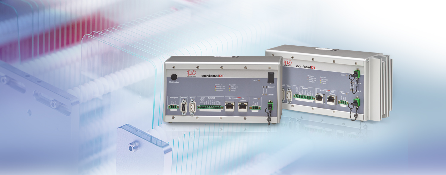 Die konfokalen Controller confocalDT 2421 und 2422 werden für Abstands- und Dickenmessungen von diffus reflektierenden und spiegelnden Oberflächen eingesetzt. Die konfokal-chromatischen Messsysteme sind in einer Ein- oder Zweikanal-Variante erhältlich und ermöglichen eine kostengünstige Lösung insbesondere für Serienanwendungen. Die aktive Belichtungsregelung der CCD-Zeile erlaubt eine schnelle und genaue Kompensation unterschiedlicher Oberflächen.