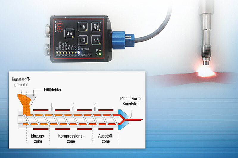 Bei der Extrusion von festen bis dickflüssigen Massen, dürfen die Werkstoffe nicht zu sehr erhitzen. Dies würde zu Verbrennungen und damit zu unerwünschter Einfärbung führen. Die präzisen Farbsensoren colorSENSOR CFO messen direkt im Extruder die Farbe der Werkstoffe. Bei transparenten Massen wie Gelatine erfolgt die Messung in Transmission, bei opaken Stoffen wie Kunststoff mit dem Reflexionsverfahren. Ein bis zwei Spezialsensoren CFS4-T150-P200 werden hierzu entweder mit einem Transmissionssensor CFS3-S-T250 oder einem Reflexsensor CFS4-S-T250 direkt in den Extruder eingebaut. Die Messung erfolgt an der Extruder-Innenwand, unter bis zu < 200 bar Druck und < 250°C. Die Ergebnisse werden im Anschluss zur Prozessregelung herangezogen.