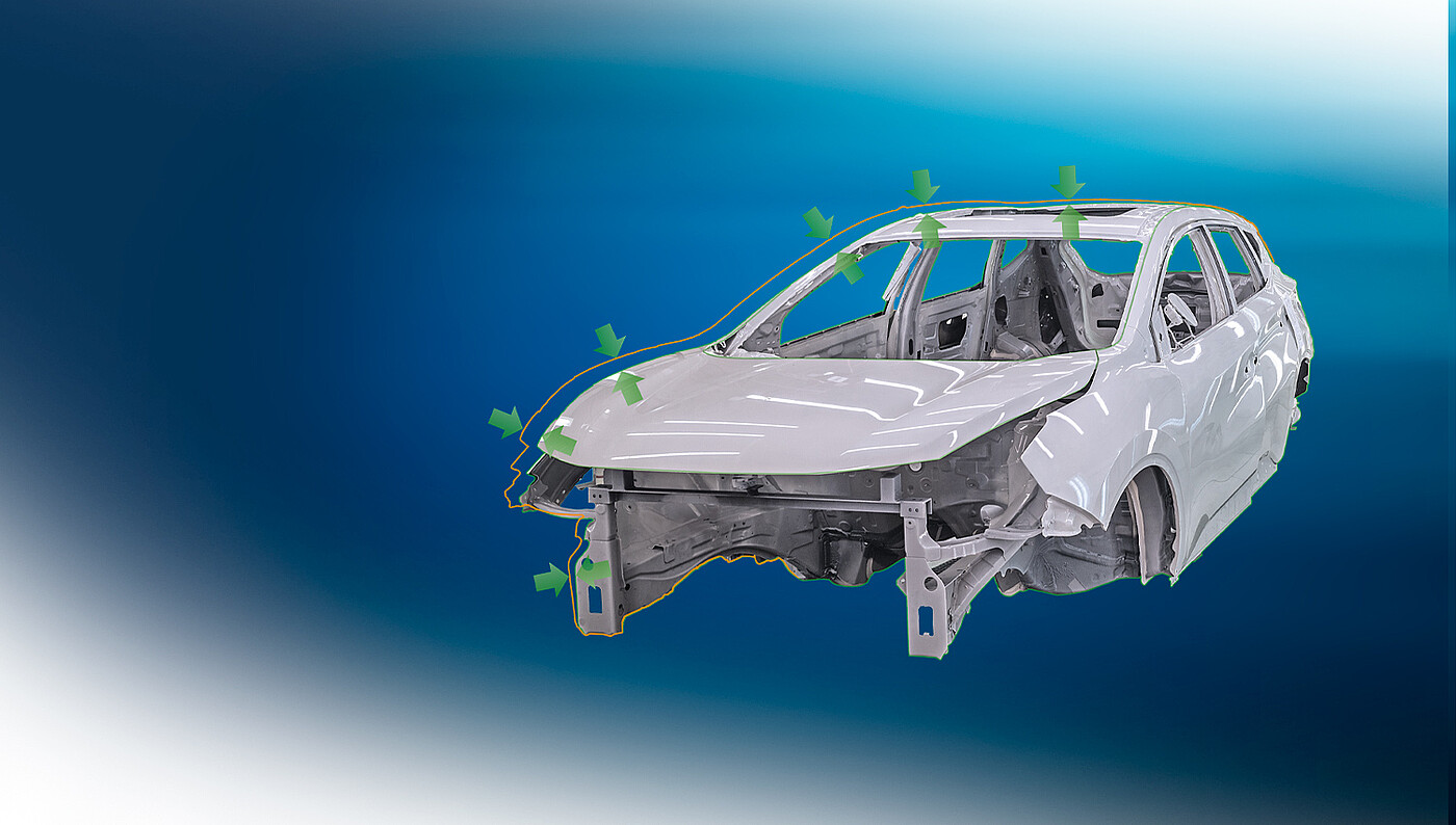 Die reflectCONTROL Systeme errechnen vollautomatisch die Karosserielage im Raum. Daraufhin werden die Messpositionen der Sensoren angepasst, wodurch sich die Messung schnell, präzise und wiederholgenau durchführen lässt.