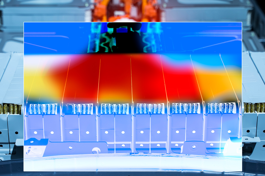 Insbesondere bei der Erstaufladung ist die Temperaturentwicklung ein entscheidender Parameter und wird daher mit Wärmebildkameras überwacht. Diese geben Aufschluss über die Temperaturverteilung und Hinweise über mögliche Kurzschlüsse. Die Wärmebildkamera thermoIMAGER TIM ist für die hohen Ansprüche industrieller Serienapplikationen konzipiert. Dank der leistungsfähigen Software können Hot- und Cold-Spots automatisch überwacht werden und Messwerte an eine Steuerung ausgegeben werden. Bis zu drei Messfelder können gleichzeitig fokussiert und kontinuierlich überwacht werden.
