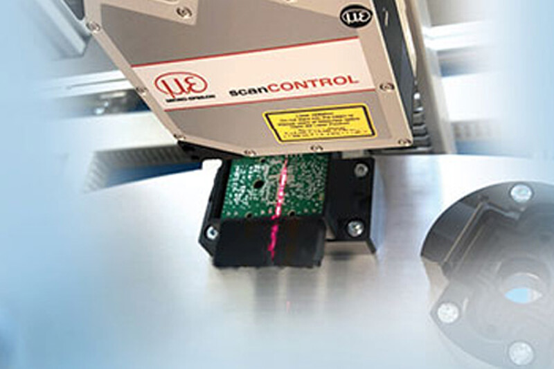 Therefore, a scanCONTROL profile sensor scans each PCB in three dimensions. During this pressing process, the PCBs are fixed on a rotary table which moves the assembled module from the press-in position to the scanning position. The scanCONTROL is being moved by an actuator connected to an encoder which is being used for triggering the line scanner to ensure regular profile distances. Depending on the cycle time of the process, the component undergoes a complete scan within 7 seconds, generating 1,280 points per profile.