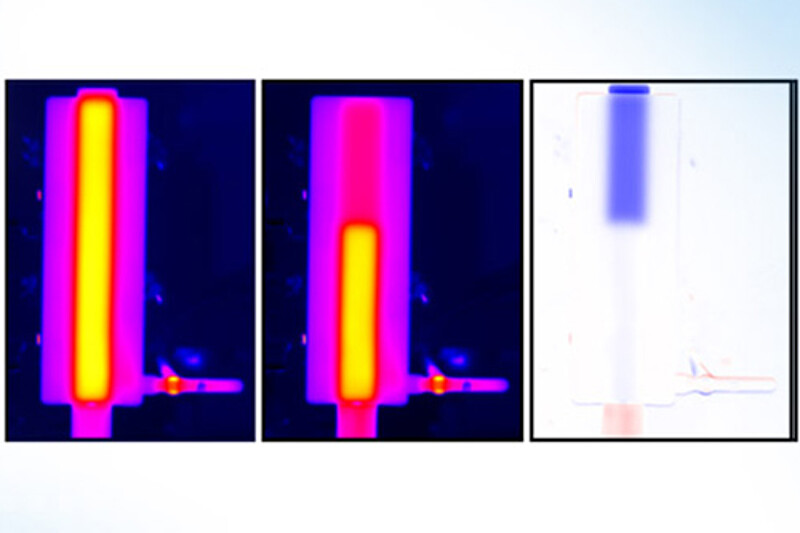 moldCONTROL is a thermography solution for recognizing quality fluctuations in injection molding production. The compact, industrial thermal imaging camera captures a thermal image of the component directly after the injection molding process. The software compares the infrared images associated with the component (actual) to stored references (target). The identified temperature differences provide the basis for a good/bad decision reported back to the handling system.