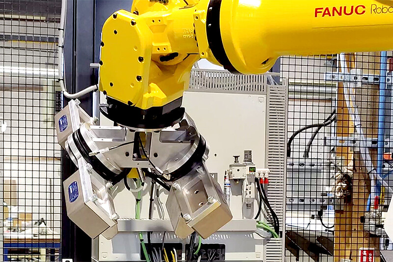 The company Mills CNC is a supplier of machine tools. They use MicroEpsilon laser sensors for the automatic inspection of large, hot-rolled railway fishplates made of steel. These fishplates join two rails together and must be as straight and flat as possible. In a machine tool automation cell specially developed by Mills CNC for this task, both the bend and a twist of the fishplates are determined. For this measurement task, an optoNCDT 1750 Micro-Epsilon sensor with a large measuring range of 750 mm is mounted on a robot. Its compact sensor design and direct data output without external controllers enable easy integration.