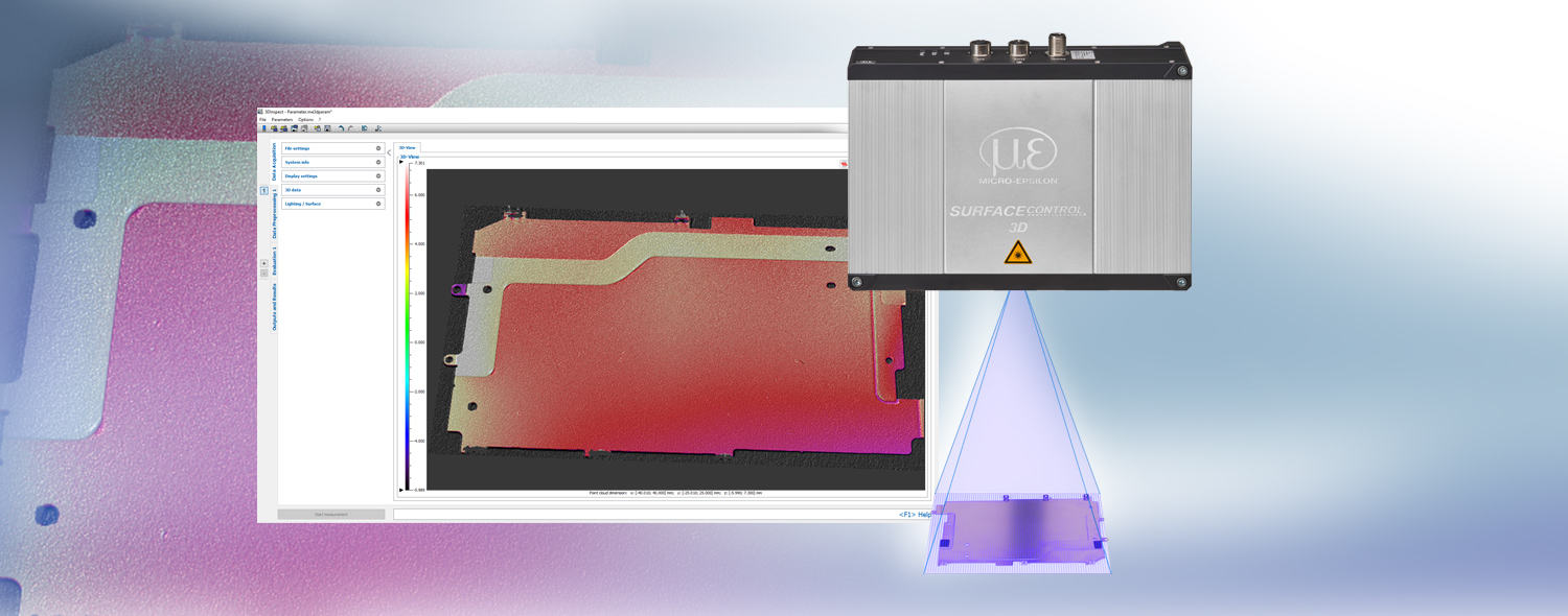 חיישן ה-surfaceCONTROL 3D 3200 בעל הביצועים הגבוהים מתאים באופן אידיאלי לשימוש ביישומים תעשייתיים. הוא מבצע מדידות תלת מימדיות אוטומטיות תוך כדי תהליך הייצור לגיאומטריה, בדיקת צורה ומשטח על משטחים מחזירי אור מפוזרים. החיישן מאופיין בעיצוב קומפקטי ובדיוק מדידה גבוה בשילוב עם מהירות עיבוד נתונים גבוהה. עם יכולת הדירות גבוהה על ציר Z של עד 0.4 מיקרומטר, החיישן אידיאלי למשימות מדידה ובדיקה מדויקות בתלת-ממד. שני תחומי מדידה שונים מכסים שדות מדידה שונים.