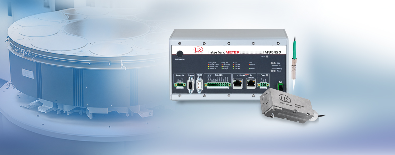 ה-IMS5420 הוא אינטרפרומטר אור לבן בעל ביצועים גבוהים למדידת עובי ללא מגע של פרוסות סיליקון מונוקריסטליות. לבקר יש דיודה סופר-לומינסנט (SLED) רחבת פס עם טווח אורכי גל של 1,100 ננומטר. זה מאפשר מדידת עובי של פרוסות סיליקון לא מאולחות, מאולחות ומאולחות מאוד עם מערכת מדידה אחת בלבד. ה-IMS5420 משיג יציבות אות של פחות מ-1 ננומטר. בהתאם לתחום היישום, זמינים חיישנים עם מרחק הזזה גדול ומערכת שטיפת אוויר.