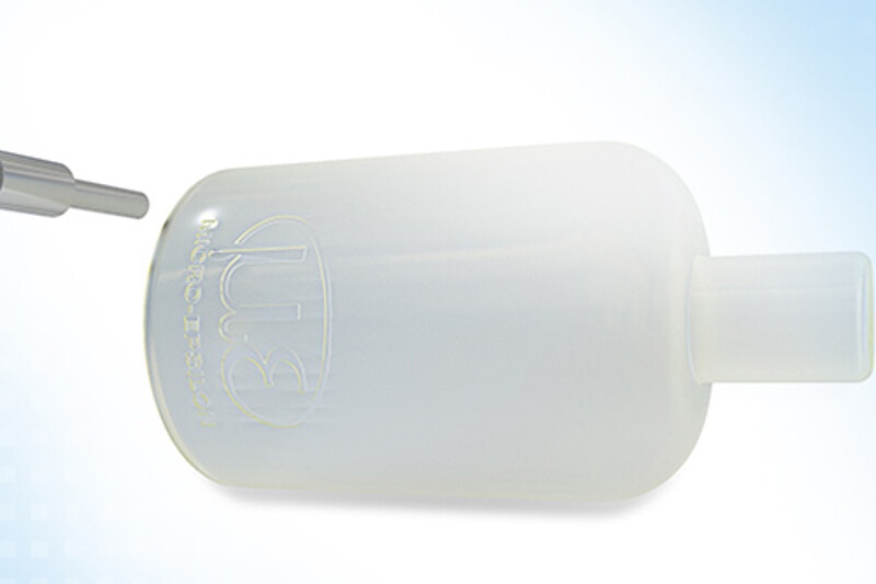 Before the printing process, a reference mark is embossed into the bottles. Due to the depression of the embossment, the color of the reference mark deviates slightly from the rest of the bottle surface. The colorSENSOR CFO100 detects this minimal color difference, which enables the exact determination of the printing position below the embossment. For a flawless print, accurate and reproducible positioning is crucial. If the marking is missing, the bottle is considered as faulty and will be rejected immediately. Therefore at the same time, a good / bad evaluation can be carried out as part of a quality control. A machine turns the cosmetics bottle while the colorSENSOR CFO100 constantly measures the surface of the bottle at a distance of less than 10 mm. The embossment is detected quickly and reliably. Next, the exact position for the bottle printing is determined and further process steps can be carried out. The colorSENSOR shows clear advantages over other measuringmethods. First, it masters the semi-transparent surface easily. Second, it is ideally suited to this kind of position measurement task due to its favorable price/performance ratio.