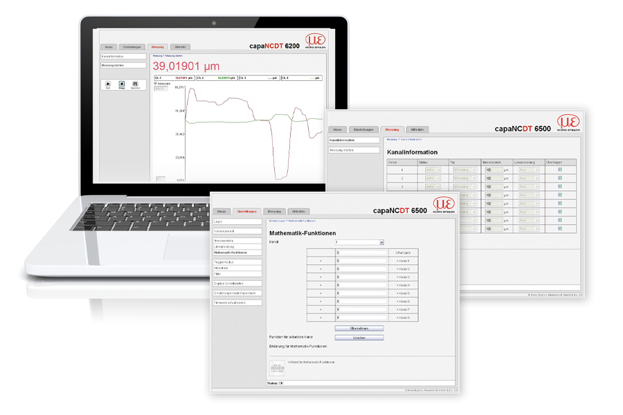 Een geïntegreerde webinterface biedt een gebruiksvriendelijke bediening en kan direct via een webbrowser worden benaderd, zonder complexe software-installatie. Instelling en configuratie, gegevensverwerking en visualisatie kunnen snel en eenvoudig via de gebruiksvriendelijke gebruikersinterface worden uitgevoerd. Instellingen kunnen worden opgeslagen en geladen, zodat de configuratie eenvoudig kan worden overgezet naar andere controllers. Tot 8 kanalen kunnen gelijktijdig worden gevisualiseerd en aritmetisch worden gekoppeld.