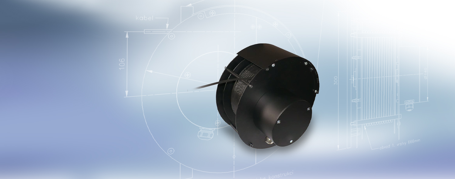 Zariadenie na meranie vyloženia ramena mobilného žeriava. Vysunutie výložníka je pomocou potenciometra napájaného konštantným jednosmerným napätím lineárne prevádzané na výstupné napätie. Zároveň zariadenie umožňuje prenášať až 4 elektrické signály z konca výložníka pomocou kábla navinutého na bubne navijaka do riadiacej jednotky. Každý zo 4 signálov je prúdovo kontrolovaný a obmedzený na maximálnu hodnotu prúdu 1 A.