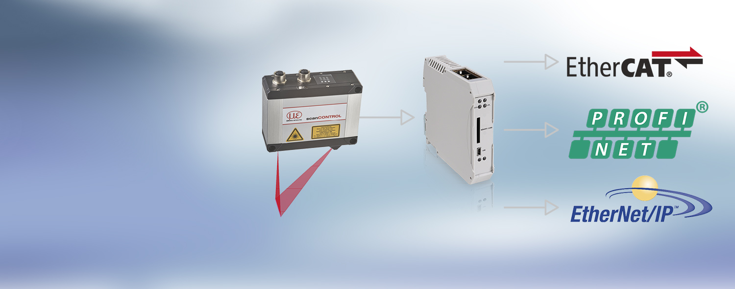 每個 2D/3D Gateway 最多可連接 4 個感測器。它通過 Etherent Modbus 與 scanCONTROL SMART 感測器通訊,然後將結果值轉換為 Profinet、EtherCAT 或 Ethernet/IP。客戶可通過詳細的使用說明書進行參數設置。