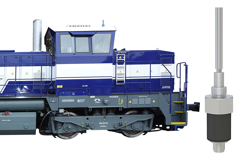 An inductive EDS displacement sensor is used for stroke measurement of hydraulic cylinders in diesel-hydraulic drives. The inductive long-stroke sensor monitors the unintended traction of the locomotive and is thus a safety-relevant component in the drive system. Only when the transmission is fully disengaged can persons such as shunters work near the locomotive. The transmission of the locomotive is moved by a hydraulic cylinder. The inductive sensor monitors the piston stroke and thus determines the clutch condition. induSENSOR EDS models are insensitive to oil and pressure and can be integrated directly into the hydraulic cylinder.