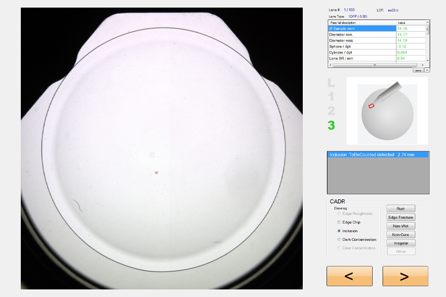 RGPレンズ等、ドライコンタクトレンズ(非含水性やオルソ‐K等を含む)計測はメーカー毎のデザインで形状も光学的特性も異なります。SHSOphthalmic citoはそれらのレンズを瞬時に計測し、合否判定を行うことができます。
